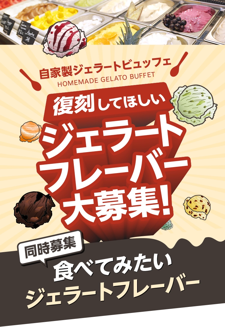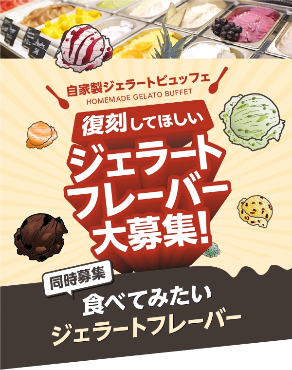 プレミアムカルビのジェラートビュッフェに登場したフレーバーは、なんと200種類以上!その中から「もう一度食べたい」復刻してほしいフレーバーを募集いたします。復刻対象はこれまでに登場した全フレーバー!
